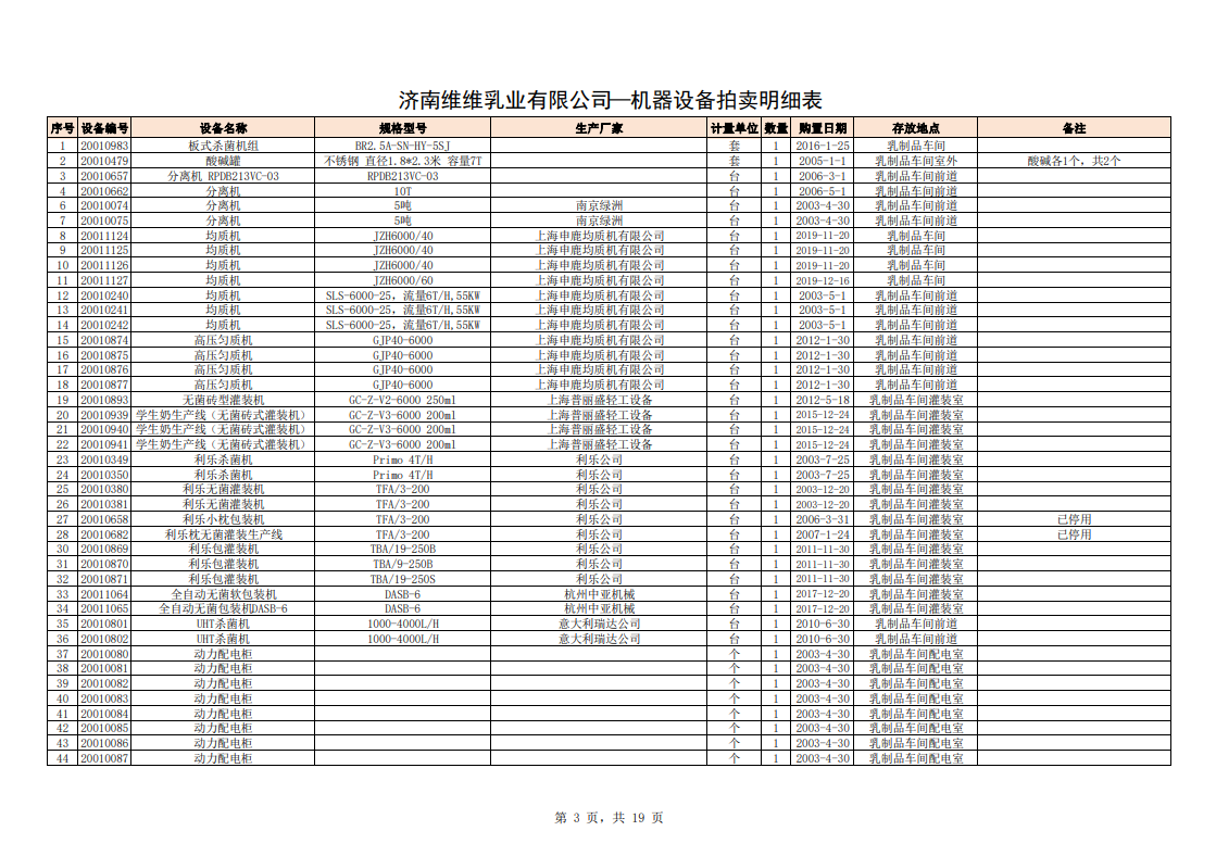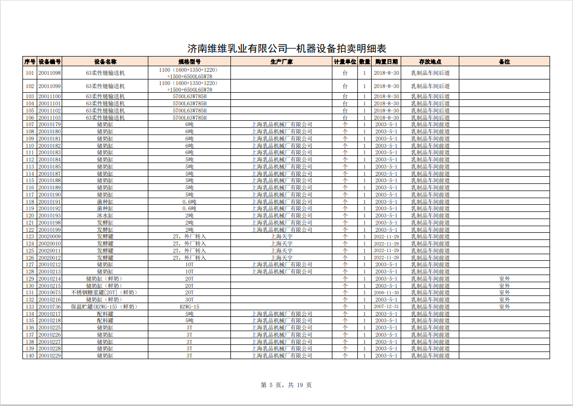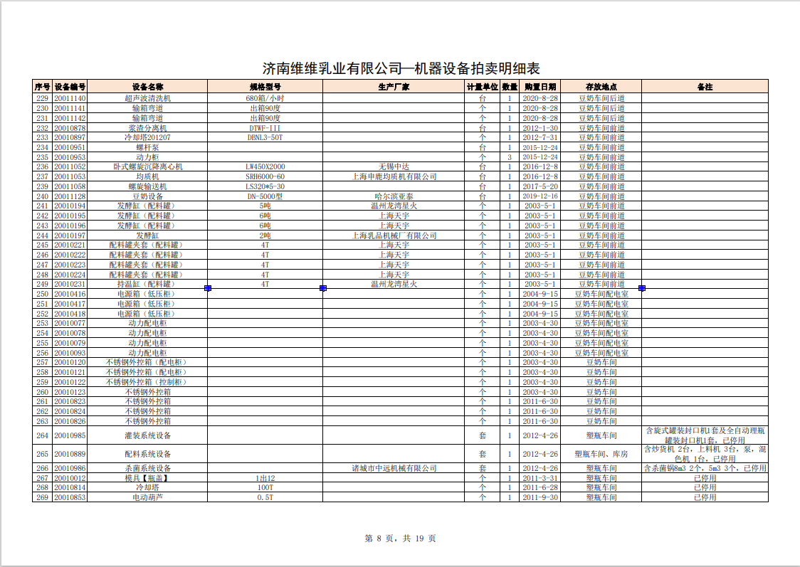 主要包含:牛奶生產(chǎn)設(shè)備、豆奶生產(chǎn)設(shè)備、利樂無菌灌裝設(shè)備、各型不銹鋼儲(chǔ)罐和發(fā)酵罐、鍋爐、烘干設(shè)備、空調(diào)、變壓器、配電設(shè)備、倉儲(chǔ)設(shè)備等。