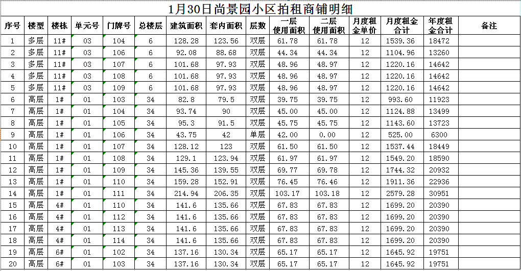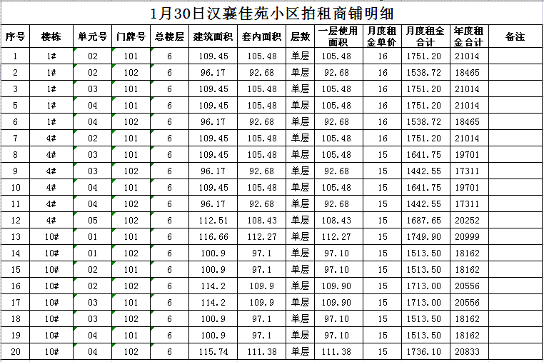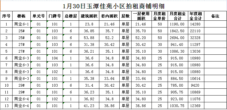 關(guān)注微信公眾號我公司受委托,定于2018年1月30日10時在本公司拍賣廳對以下小區(qū)門面房進(jìn)行公開拍租: