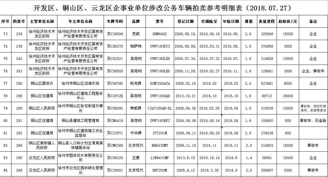 關(guān)注微信公眾號受委托,五家拍賣公司聯(lián)合舉行“徐州市企事業(yè)單位改革公務(wù)車輛聯(lián)合拍賣會”。拍賣時間:2018年7月27日上午9:30。