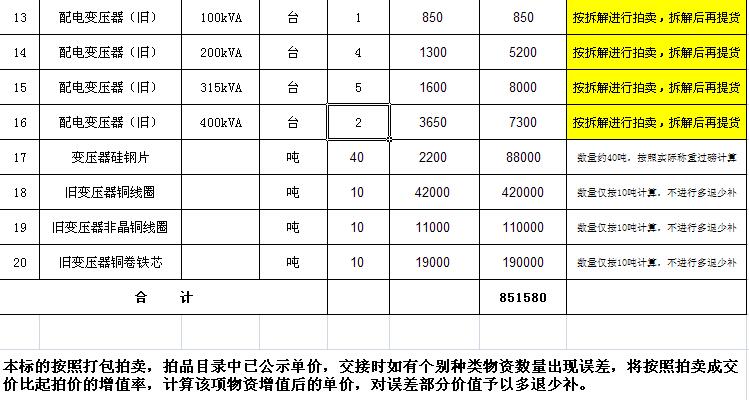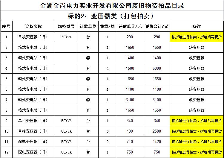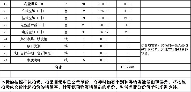 三、本次拍賣物資部分打包拍賣,部分按單價(jià)拍賣。