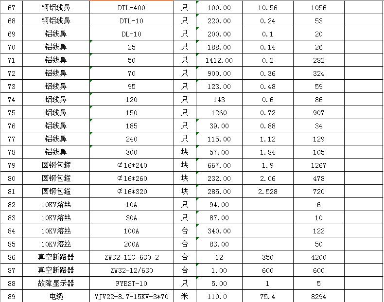 淮陰力源電力實業(yè)開發(fā)有限公司廢舊物資拍賣參考明細表