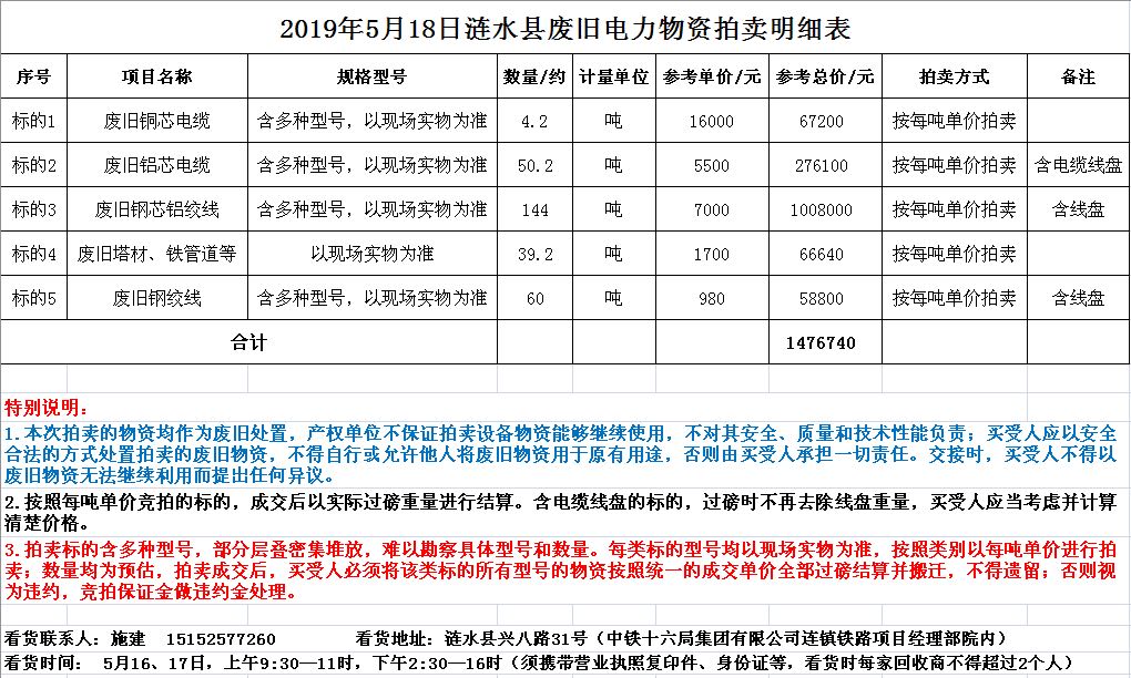關注微信公眾號受委托,我公司將通過中國拍賣行業(yè)協(xié)會網(wǎng)絡拍賣平臺以網(wǎng)絡競價的方式公開拍賣以下廢舊電力物資,主要包括:銅芯電纜、鋁芯電纜、鋼芯鋁絞線、鋼絞線、角鋼塔等。