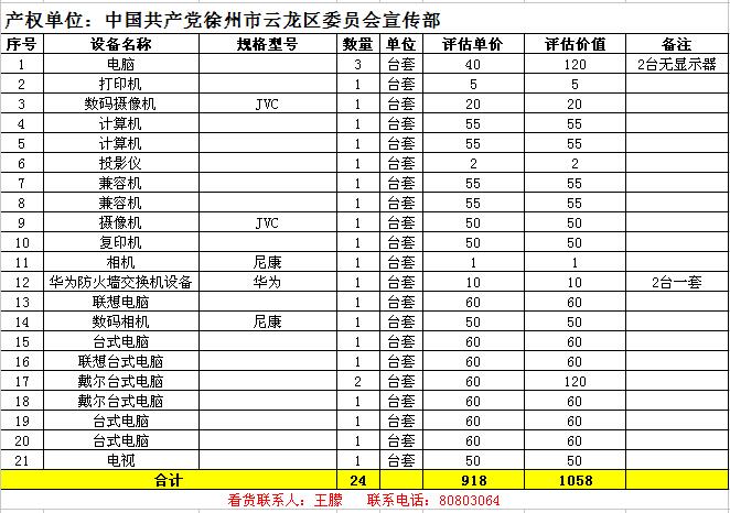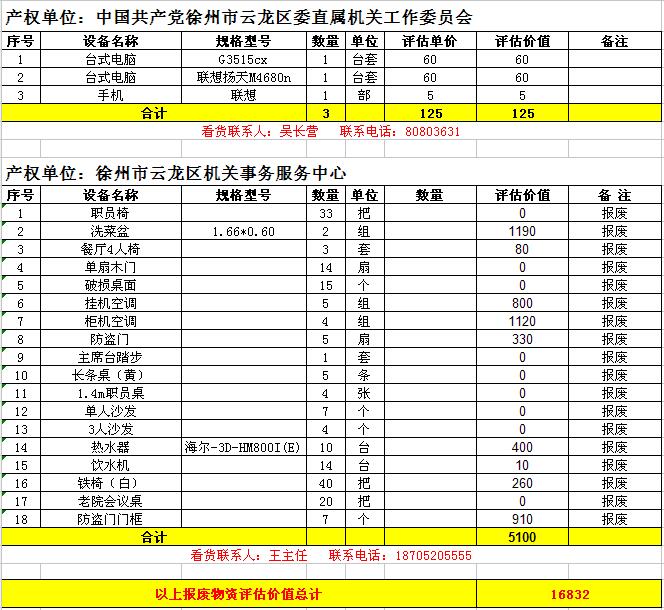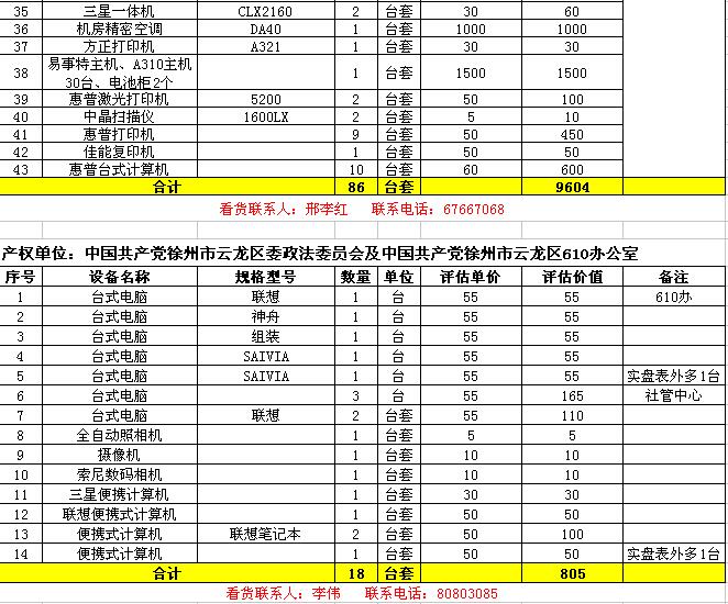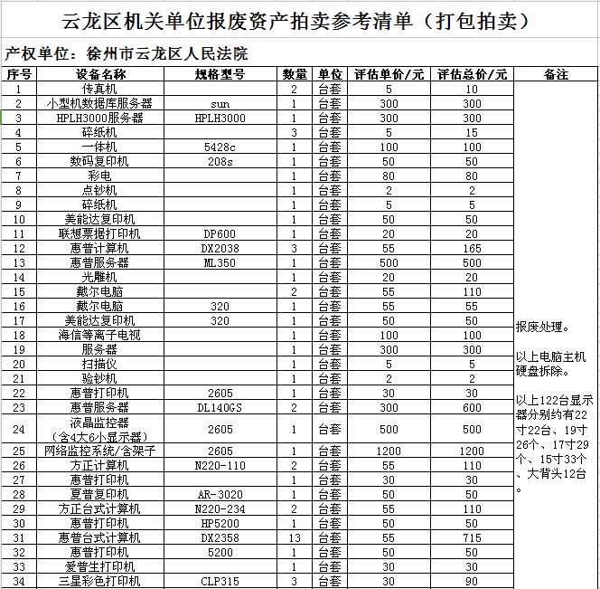 1. 云龍區(qū)數(shù)家單位廢舊辦公設備一批,主要包括:廢舊電腦、復印打印機、攝像機、空調、辦公家具等。