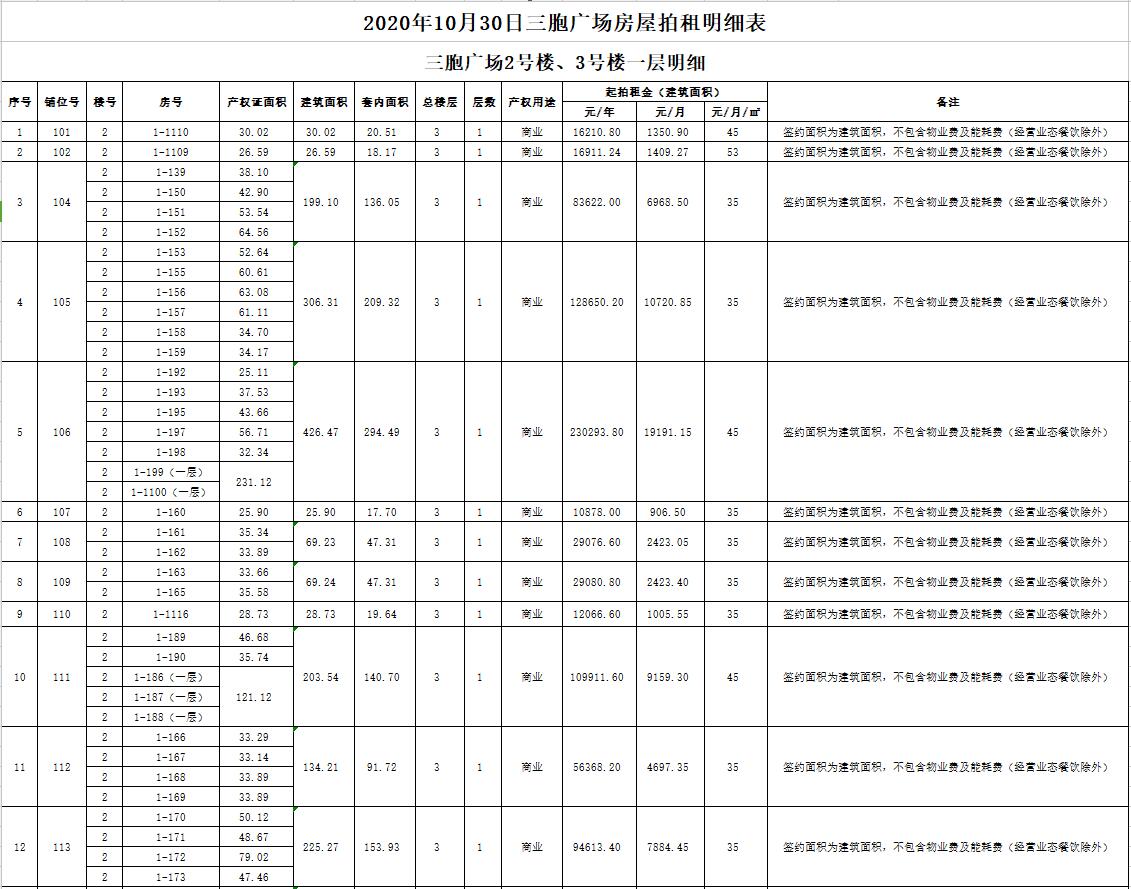 關(guān)注微信公眾號(hào)我公司受委托,定于2020年10月30日10時(shí)在徐州中山南路55號(hào)本公司三樓拍賣(mài)廳公開(kāi)拍租:三胞廣場(chǎng)2號(hào)樓、3號(hào)樓1層、3層等部分商鋪及辦公房,面積分別約為數(shù)十至數(shù)百平米,租期3-5年。禁止從事危險(xiǎn)品、有污染及擾民的行業(yè)經(jīng)營(yíng)。