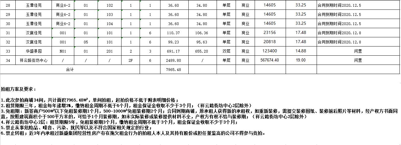 關(guān)注微信公眾號我公司受委托,定于2020年11月3日9:30在徐州云泉山莊第七會議室公開拍租以下社區(qū)房屋:潤和園、楓情水岸、湖西雅苑、嘉和雅苑、尚景園、玉潭佳苑、漢襄佳苑、華盛景園、祥云路街坊中心二層等。拍租房屋共34處,商鋪面積分別約為數(shù)十至數(shù)百平米,祥云路街坊中心二層約2490平米。社區(qū)商鋪租期三年,祥云路街坊中心二層辦公房租期五年。詳情請登錄本公司網(wǎng)站或微信公眾號查詢。