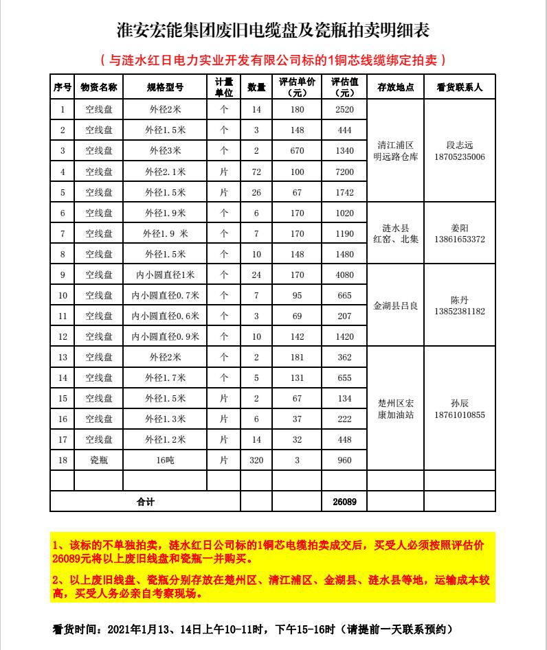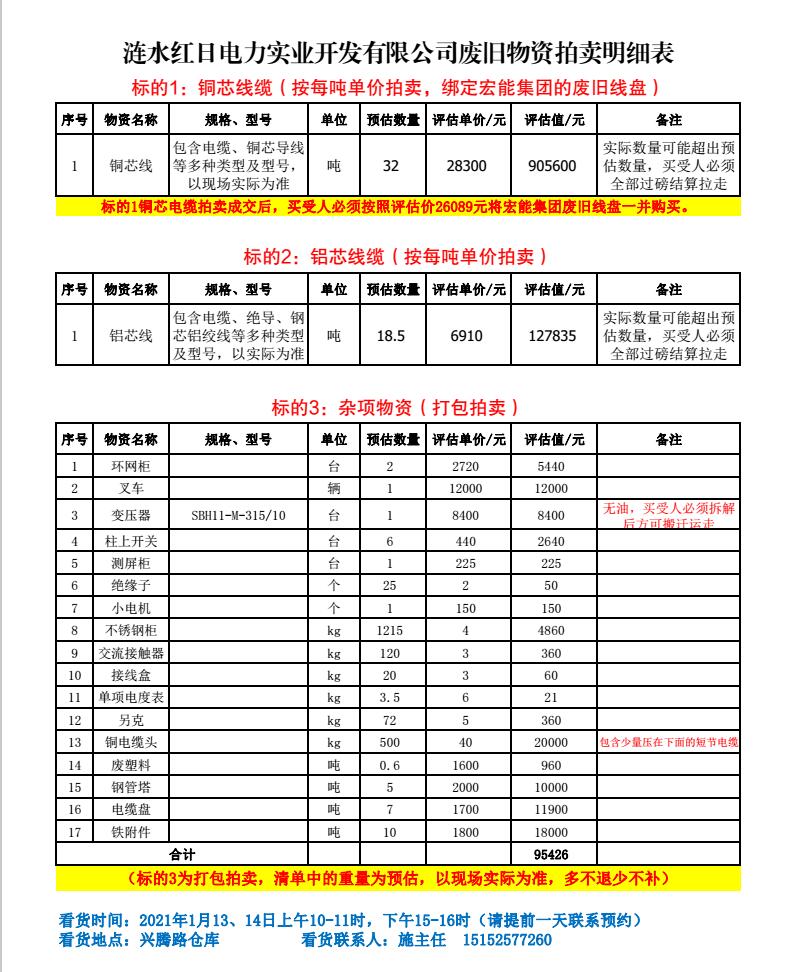 關(guān)注微信公眾號(hào)受委托,我公司將通過(guò)中拍平臺(tái)以網(wǎng)絡(luò)競(jìng)價(jià)的方式公開(kāi)拍賣(mài)以下單位廢舊電力物資。主要包含:廢舊電纜盤(pán)、銅芯電纜、鋁芯電纜、鋼管塔、鐵附件、開(kāi)關(guān)柜、變壓器、雜項(xiàng)物資等。