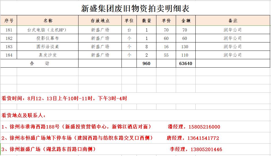 2、新盛集團廢舊電腦、空調(diào)、復(fù)印機、廚浴設(shè)備、健身器材、辦公家具等物資。(保證金2萬元)