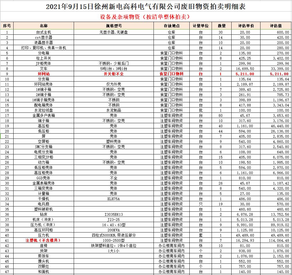 9月14、15日在徐州新電高科電氣有限公司集中展示。符合條件者請持上述資質(zhì)原件及公章等到本公司辦理報名,并交納10萬元保證金即可參拍,報名截止至9月13日16時。