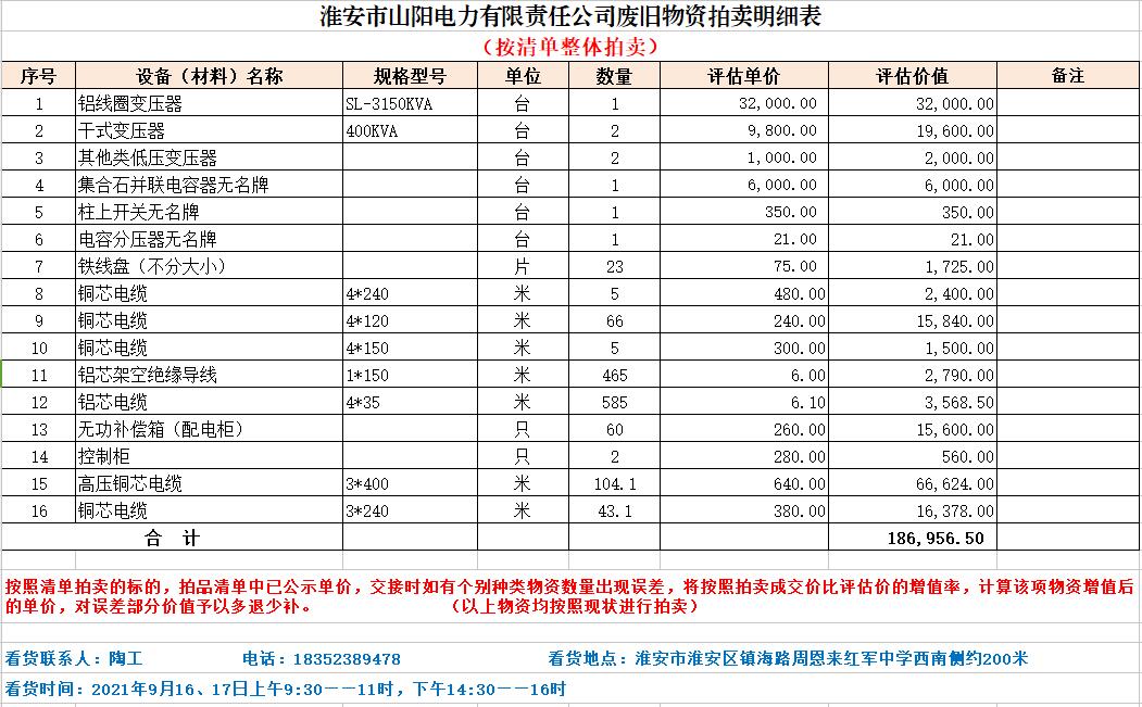 關(guān)注微信公眾號(hào)受委托,我公司定于2021年9月18日10時(shí)(網(wǎng)絡(luò)延時(shí)除外)在中拍平臺(tái)以網(wǎng)絡(luò)競(jìng)拍的方式公開(kāi)拍賣(mài)以下單位電力物資,主要包含:變壓器、開(kāi)關(guān)柜、配電柜、控制柜及電纜等物資。
